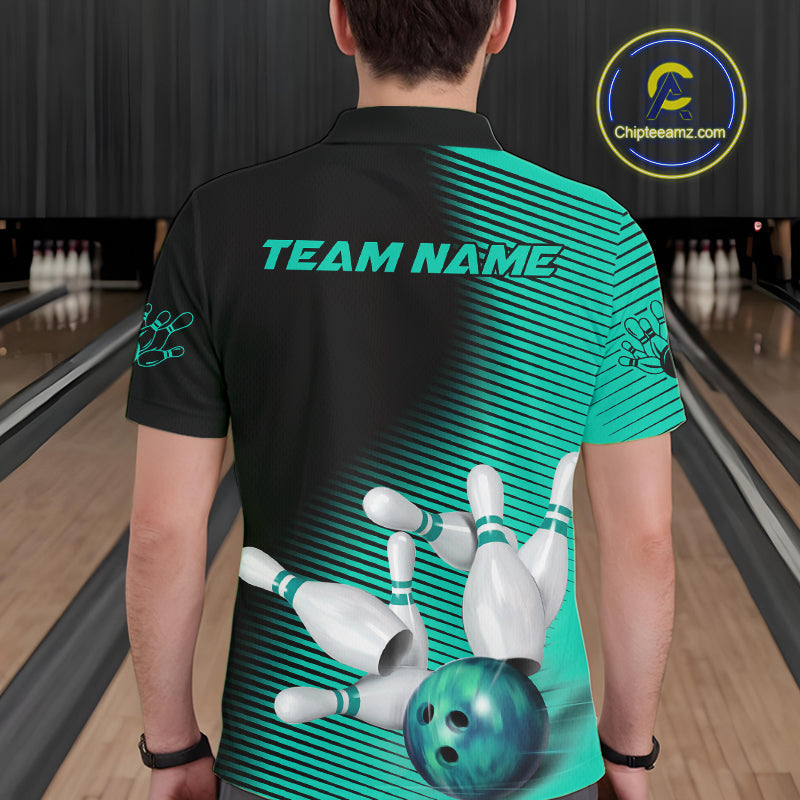 Custom Black And Ball Blue Bowling Polo Shirts For Men, Blue Bowling Jerseys IPHW9402
