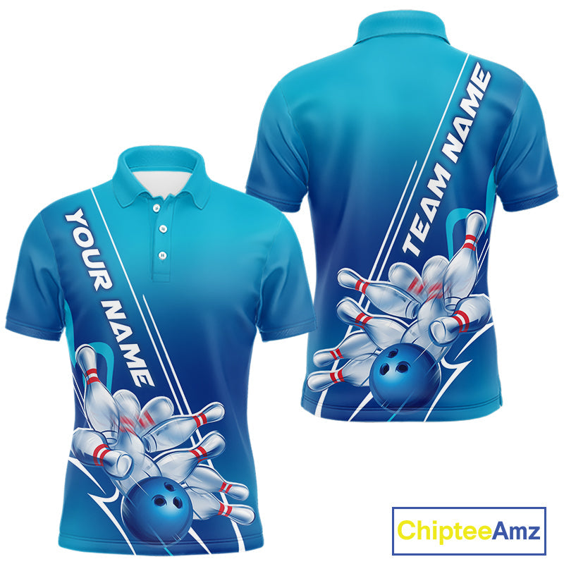 Custom Blue Bowling Pattern Bowling Team Polo Shirts For Men, Blue Bowling Jerseys IPHW9428