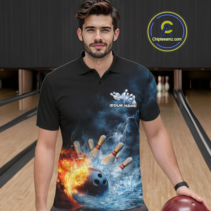 Custom Water And Fire Bowling Team Polo Shirts For Men, Thunder Lightning Bowling Uniform IPHW9450