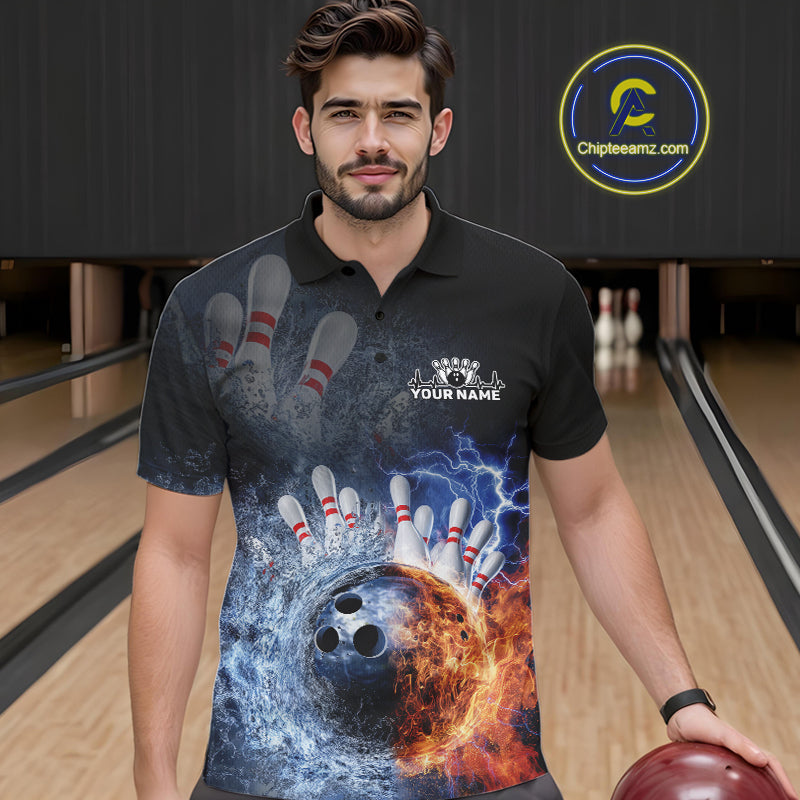 Custom Lightning, Fire And Water Splash Energy Burst Bowling Team Polo Shirts For Men IPHW9451