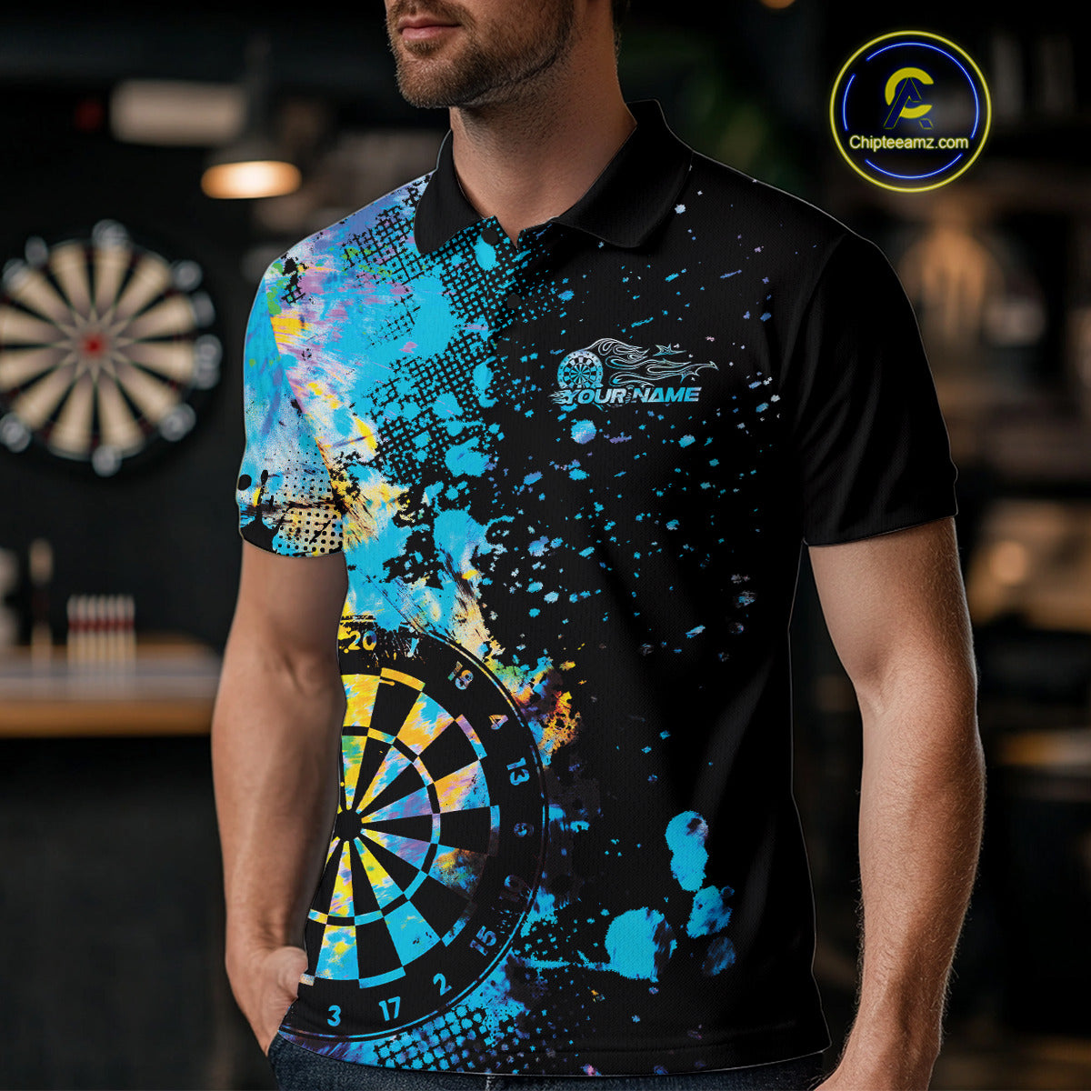 Custom Colorful Splatter Dartboard Dart Polo Shirt For Men, Grunge Dart Team Jerseys IPHW9959