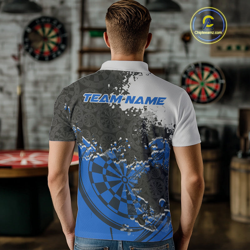 Custom Black And Blue Dartboard Dart Team Men Polo Shirt, Dartboard Pattern Dart Jerseys IPHW9988