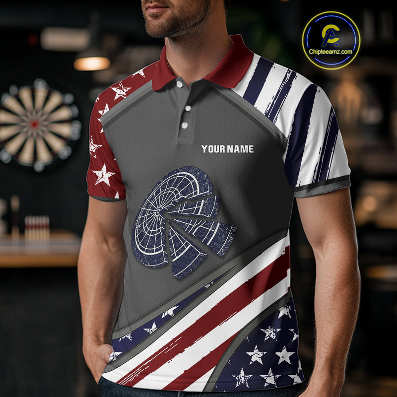 US Flag Cracked Dartboard Custom Darts Polo Shirt For Men - Darts Team Jersey NYN0728