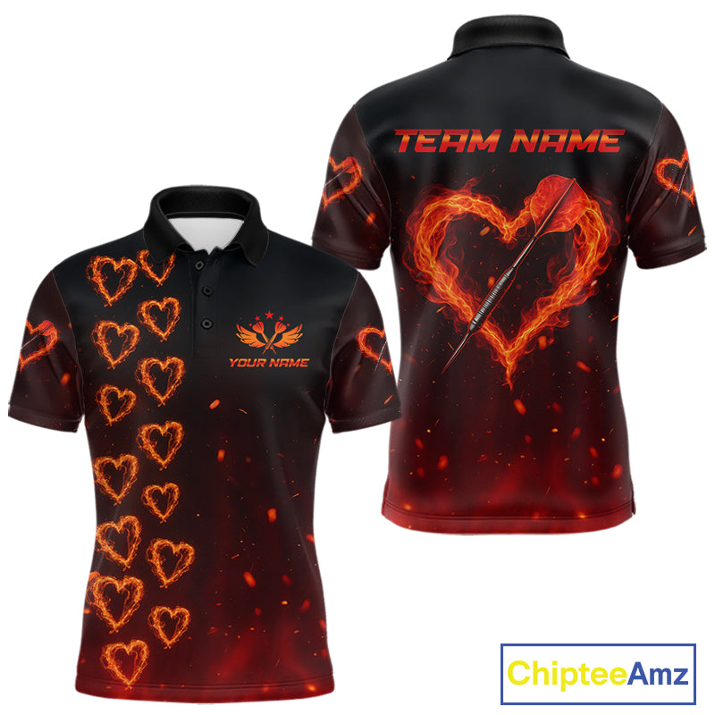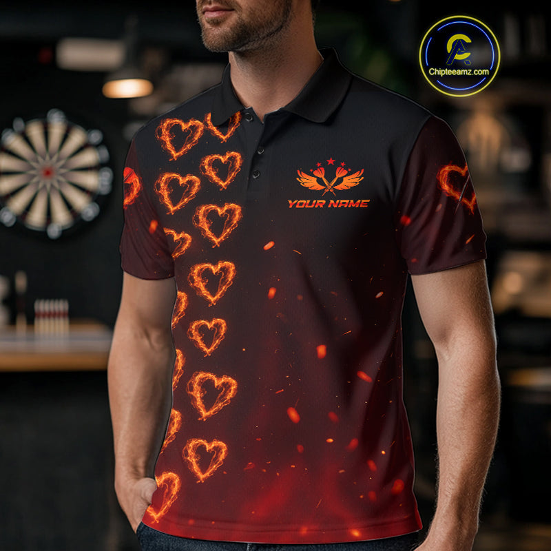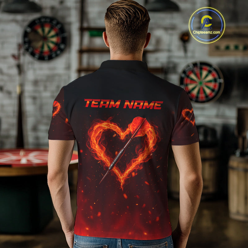 Flame Heart Dart Arrow Men's Darts Shirt Polo Jersey Custom Name For Players NYN0737