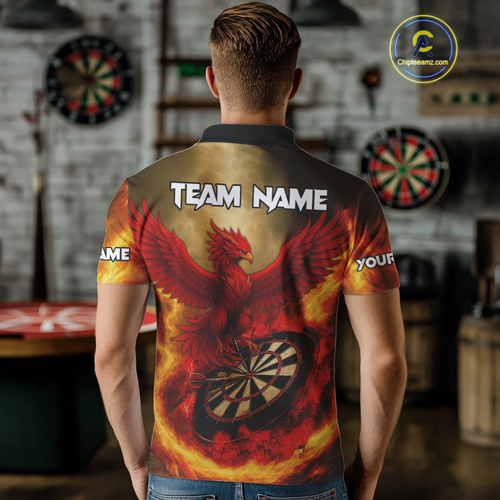 Red Phoenix & Flame Dartboard Men's Darts 1/4-Zip Shirt - Custom Name For Players NYN0765