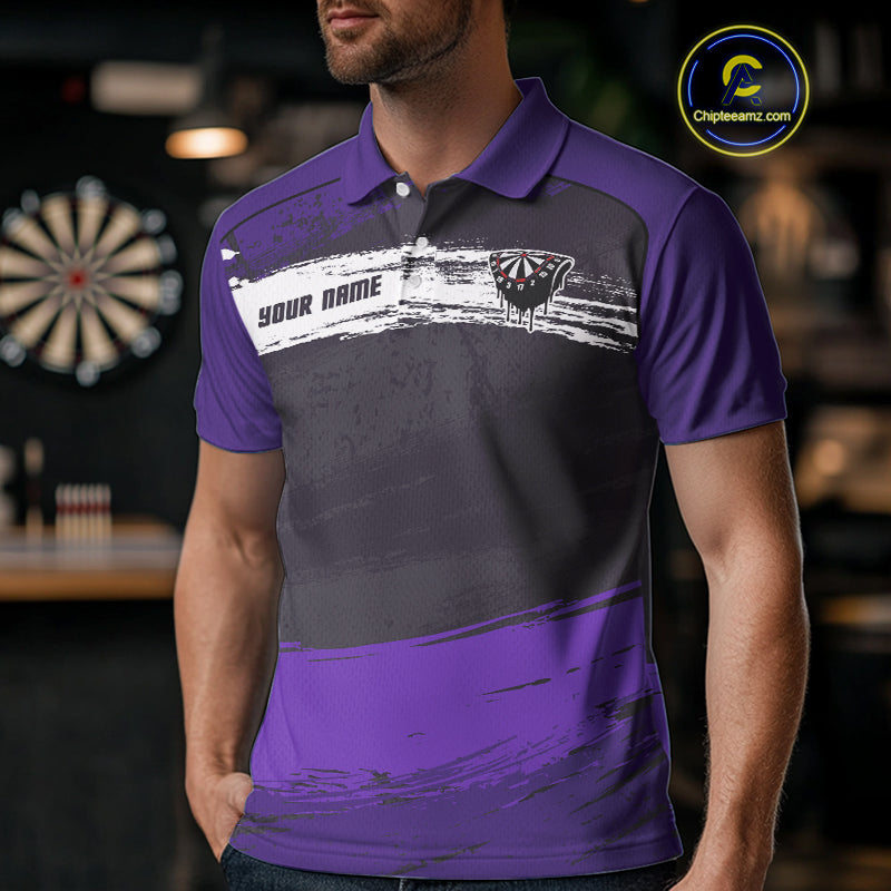 Custom Grunge Black And Purple Dripping Dartboard Dart Team Men Polo Shirt NYN1549