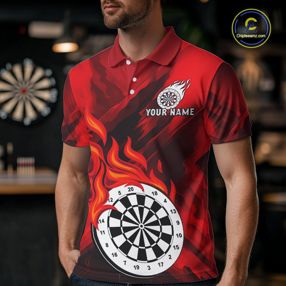 Custom Red Flaming White Dartboard Dart Polo Shirt For Men Outfits Dart Jerseys NYN1609