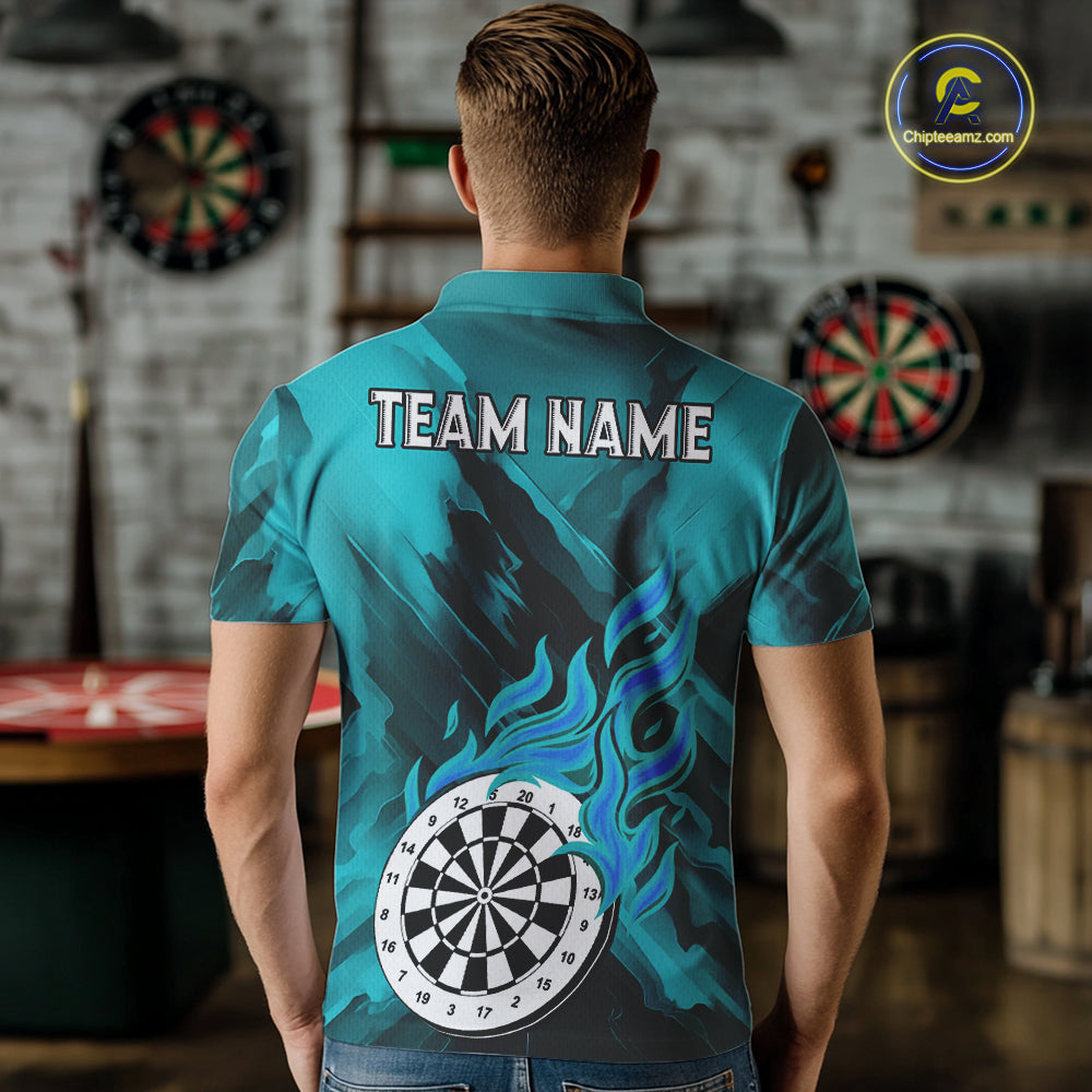 Custom Turquoise Flaming White Dartboard Dart Polo Shirt For Men Outfits Dart Jerseys NYN1611