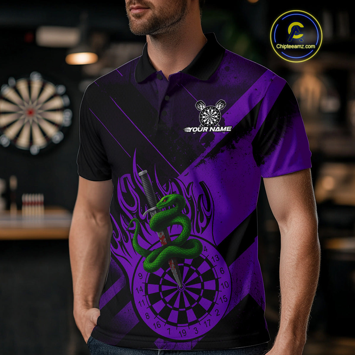 Custom Green Cobra Flames Dartboard Purple Grunge Dart Men Polo Jerseys Dart Shirt Gifts NYN1643