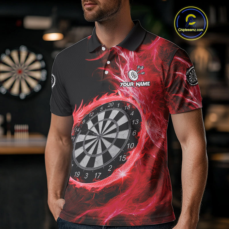 Custom Black-Red Dragon Lightning Dartboard Dart Men Polo Jerseys Dart Team Shirt NYN1689