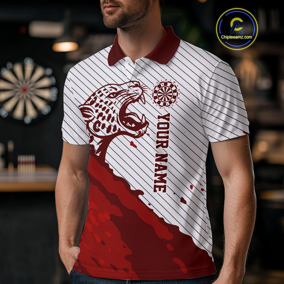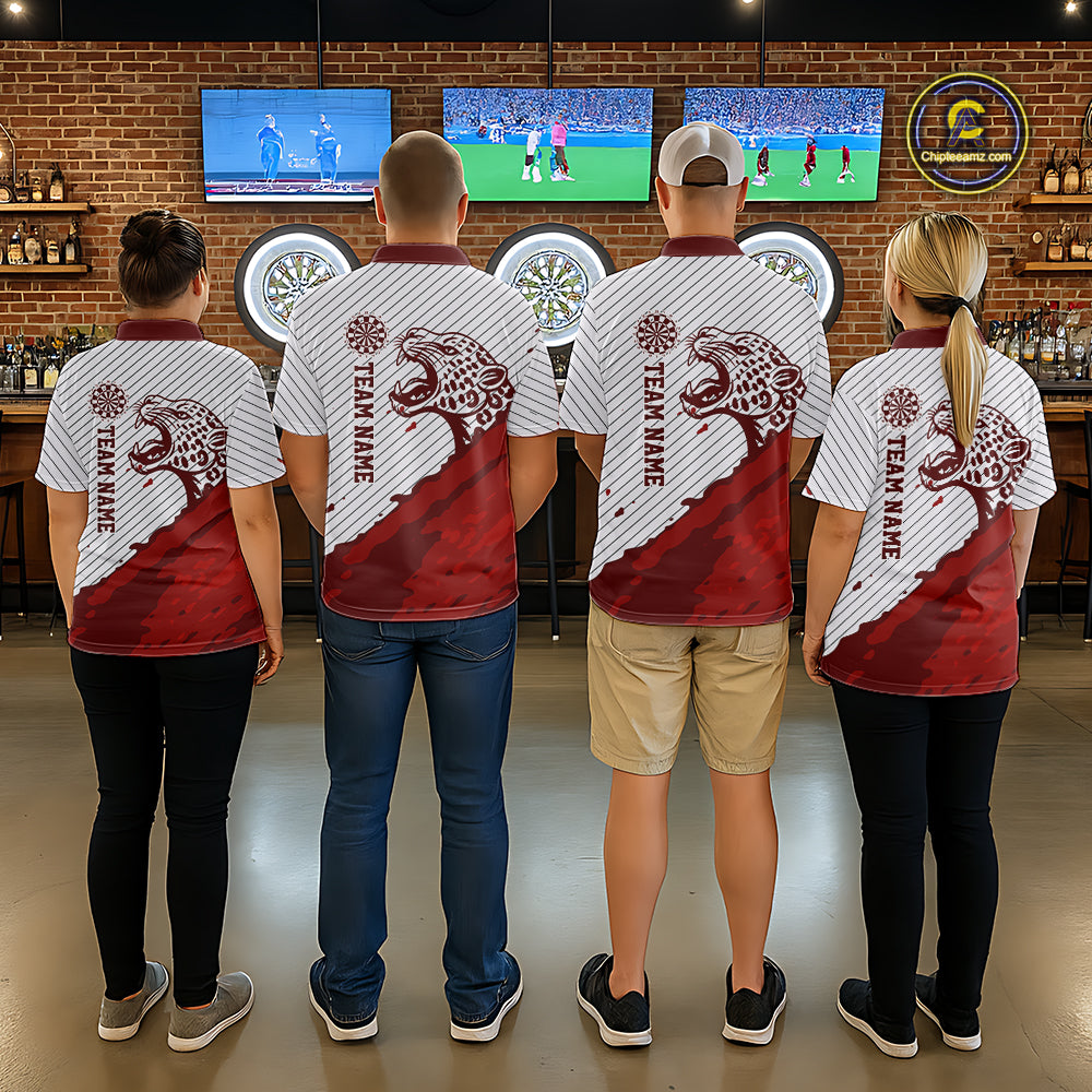 Personalized White And Red Striped Leopard Darts Polo Shirts For Men Dart Team Jerseys NYN2197