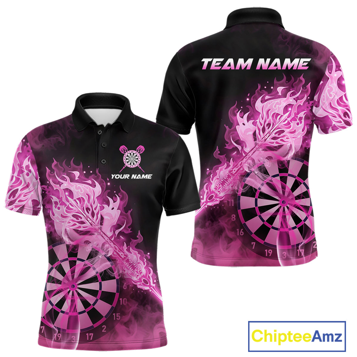 Custom Smoke Pink Fire Flaming Dart Arrow Men Darts Polo League Shirts Dart Team Jerseys NYN2213