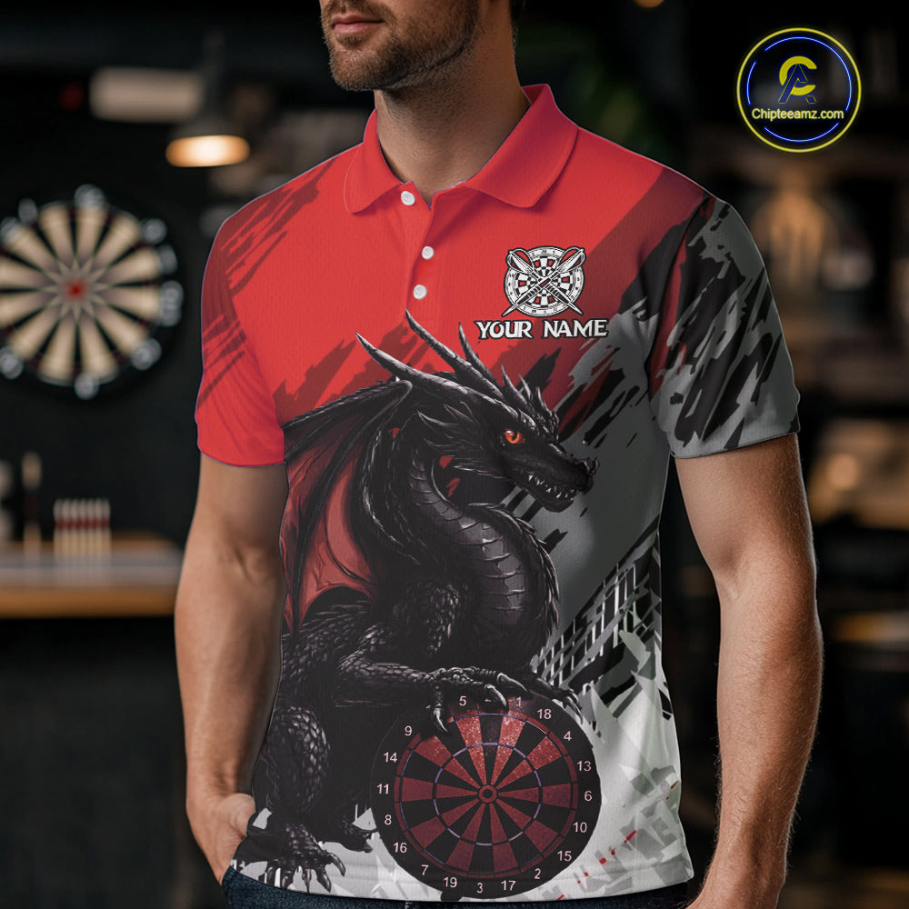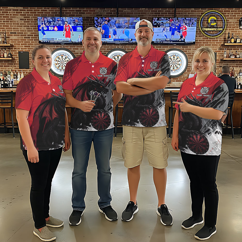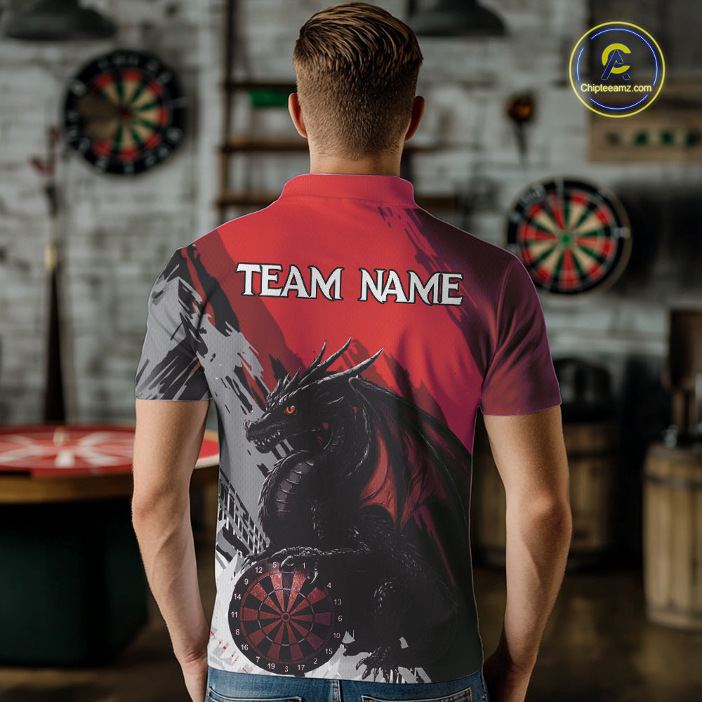 Red Grunge Dragon Dartboard Custom Men Darts Polo League Shirts Dragon Dart Jerseys NYN2239