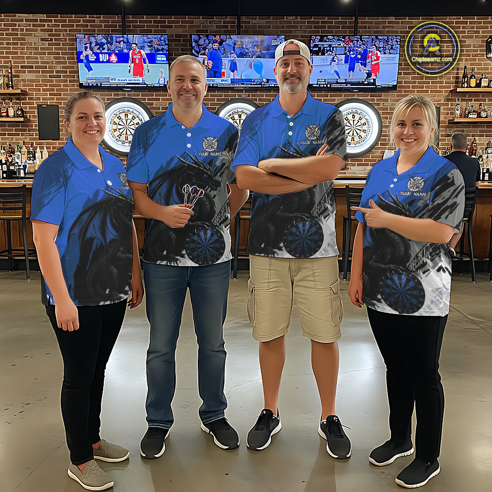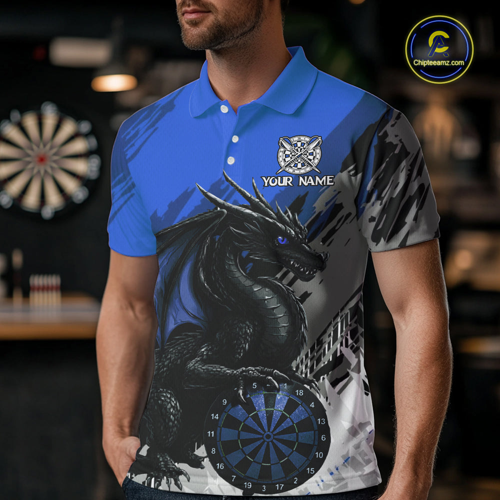 Blue Grunge Dragon Dartboard Custom Men Darts Polo League Shirts Dragon Dart Jerseys NYN2240