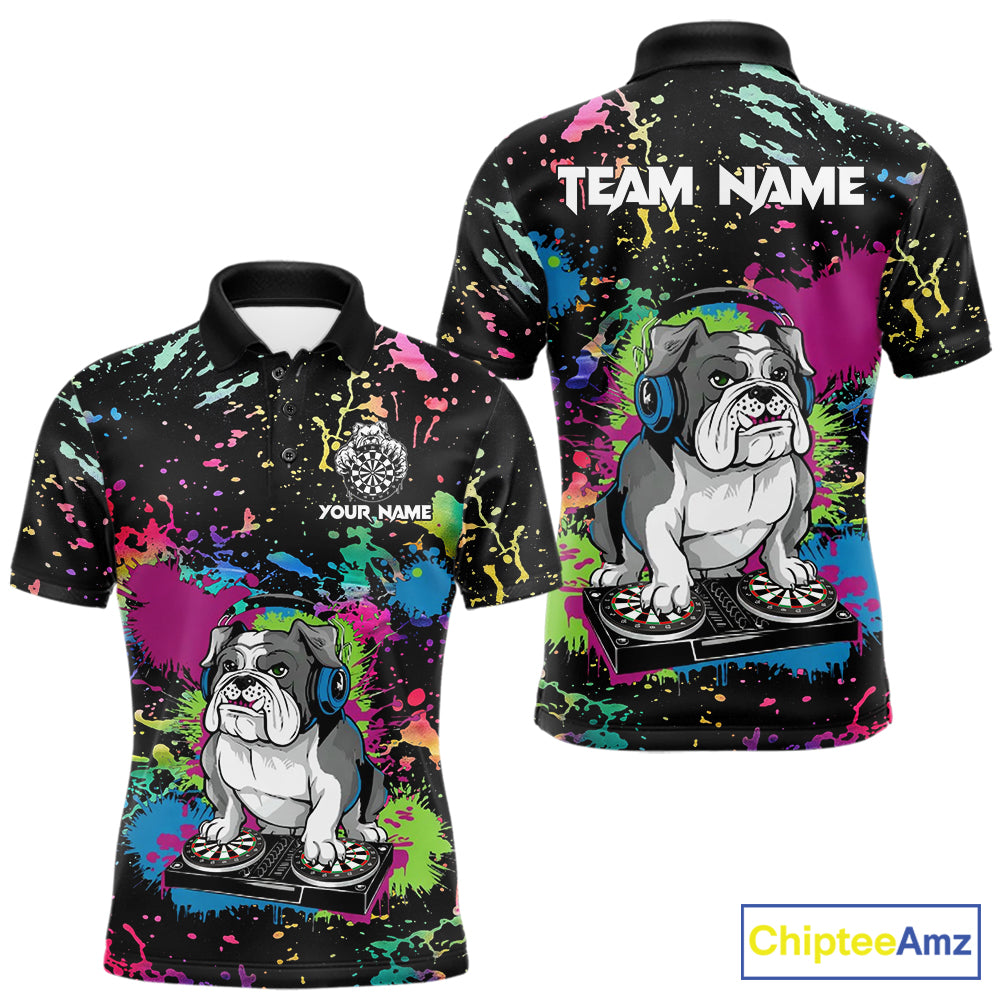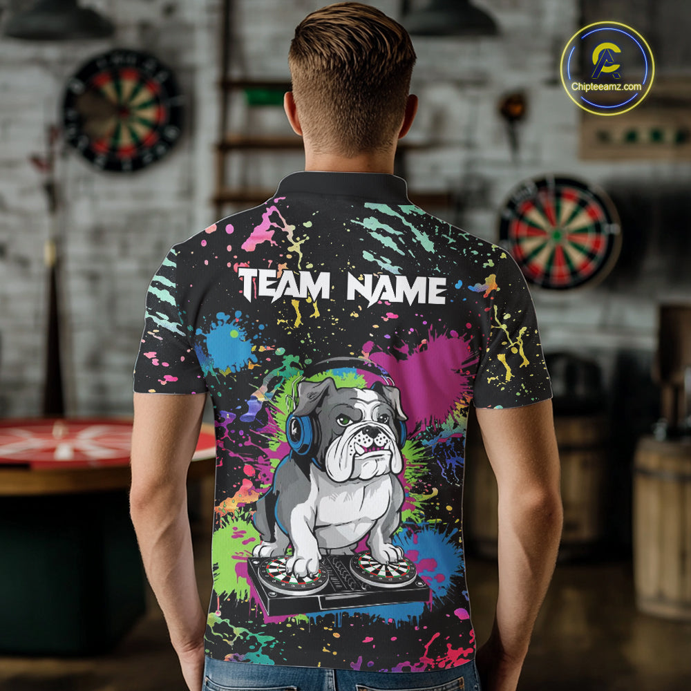 Colorful Paint Funny Dj Music Bulldog Custom Men Darts Polo Shirts Dart League Jerseys NYN2257