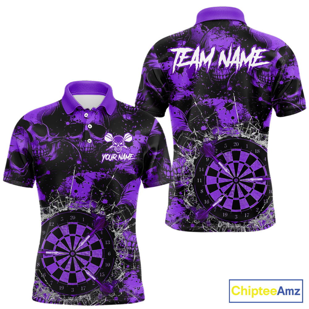 Purple Grunge Skull Cracked Glass Dartboard Custom Men Darts Polo Shirts Dart Team Jerseys NYN2260