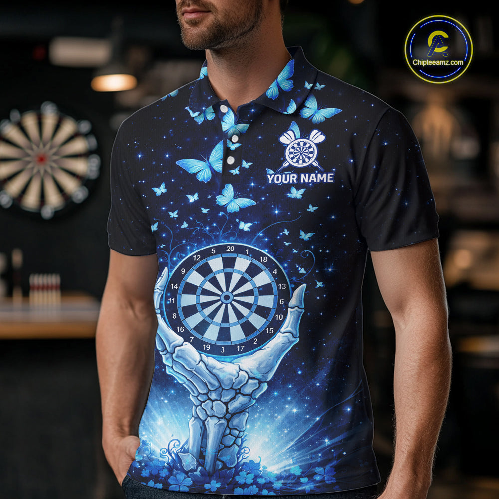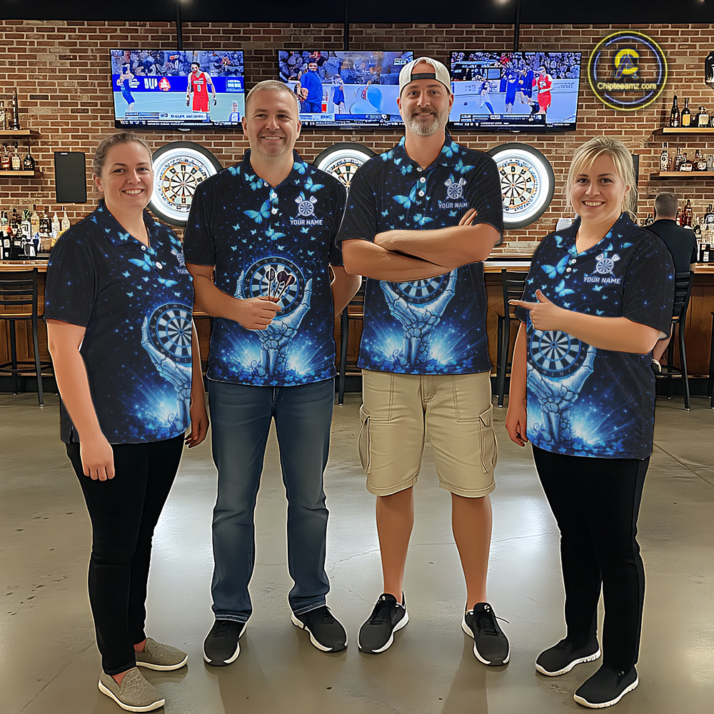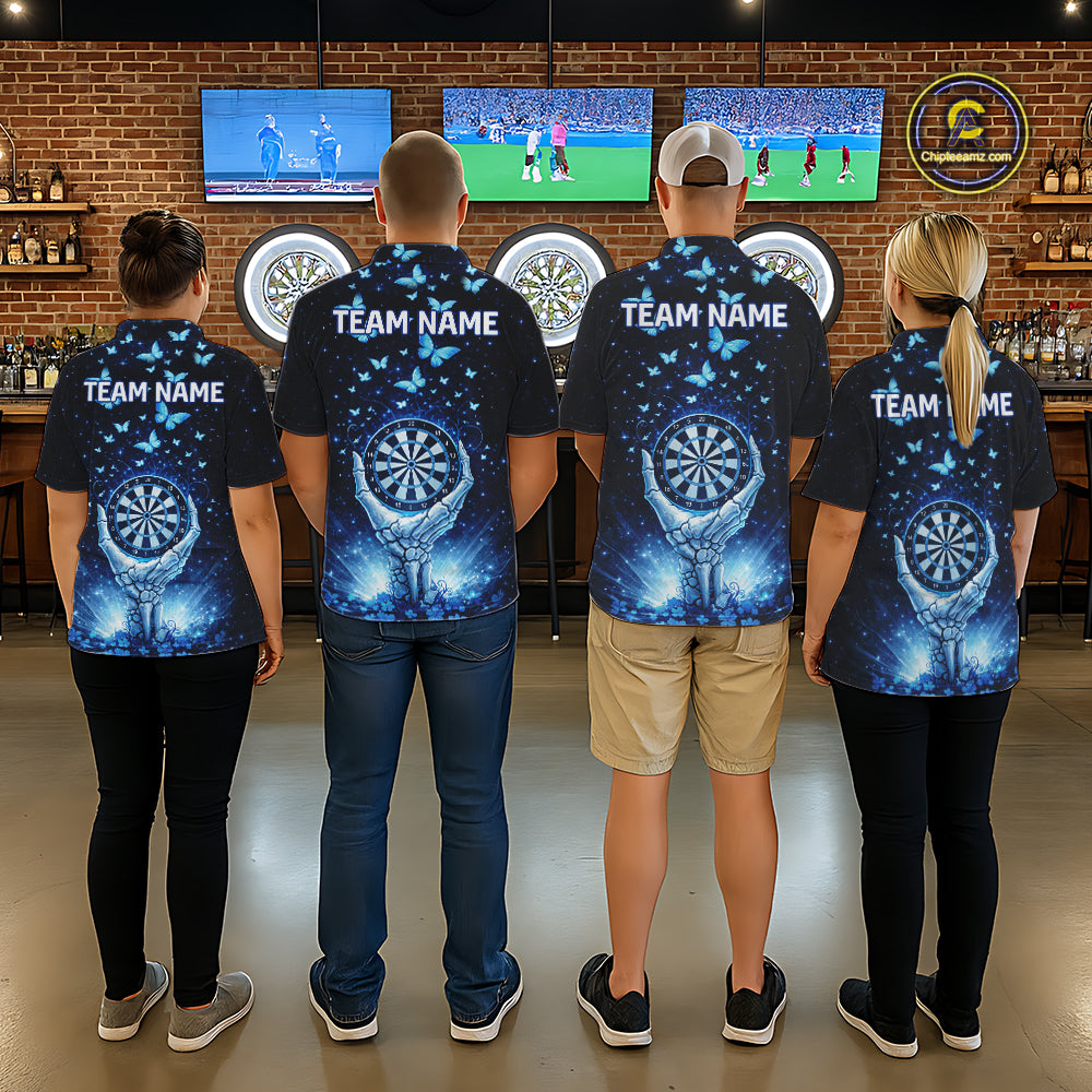 Blue Light Butterflies Skull Dartboard Custom Men Darts Polo Shirts Dart League Jerseys NYN2263