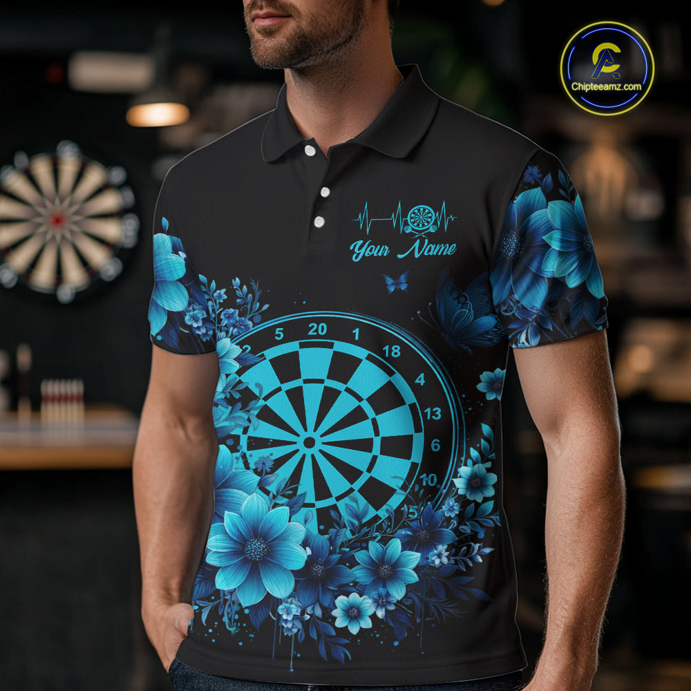 Blue Flowers & Butterfly Dartboard Custom Men Darts Polo Shirts Dart League Jerseys NYN2265