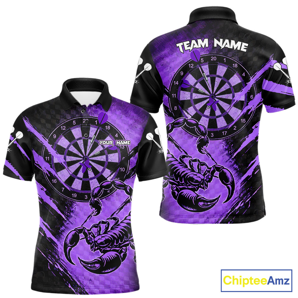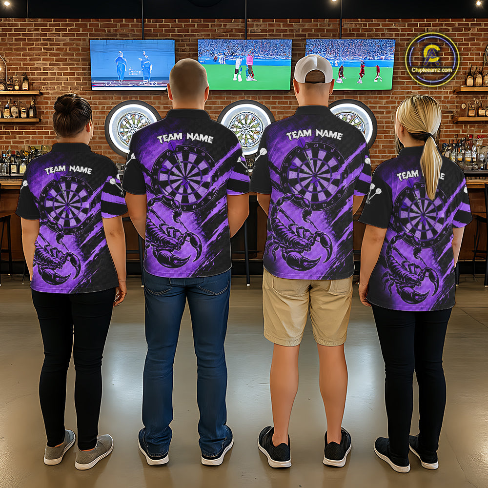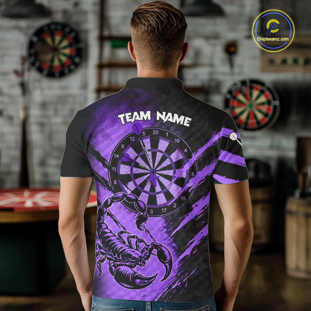 Black And Purple Grunge Scorpion Custom Funny Darts Polo Shirts Men Dart Team Jerseys NYN2274