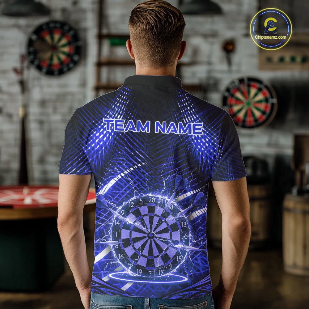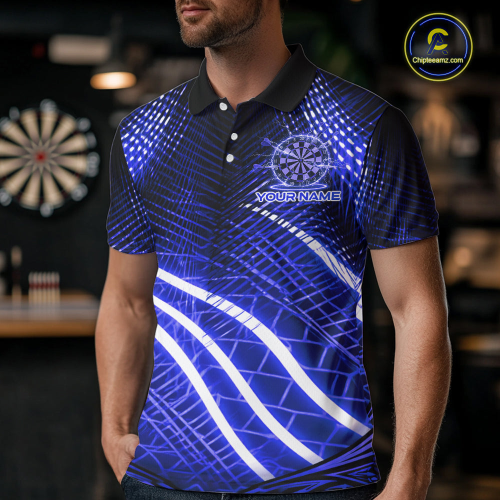 Black And Blue Stripes Light Dartboard Custom Darts Polo Shirts Men Dart Team Jerseys NYN2277
