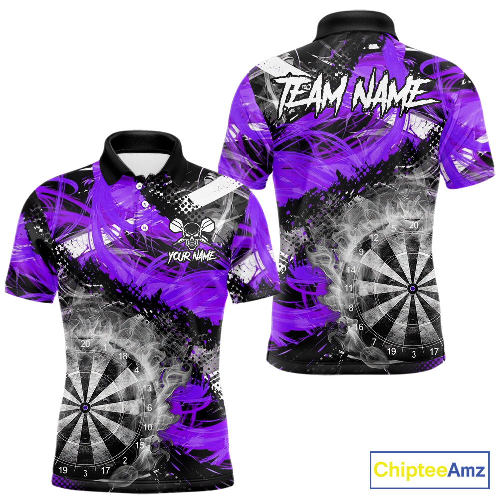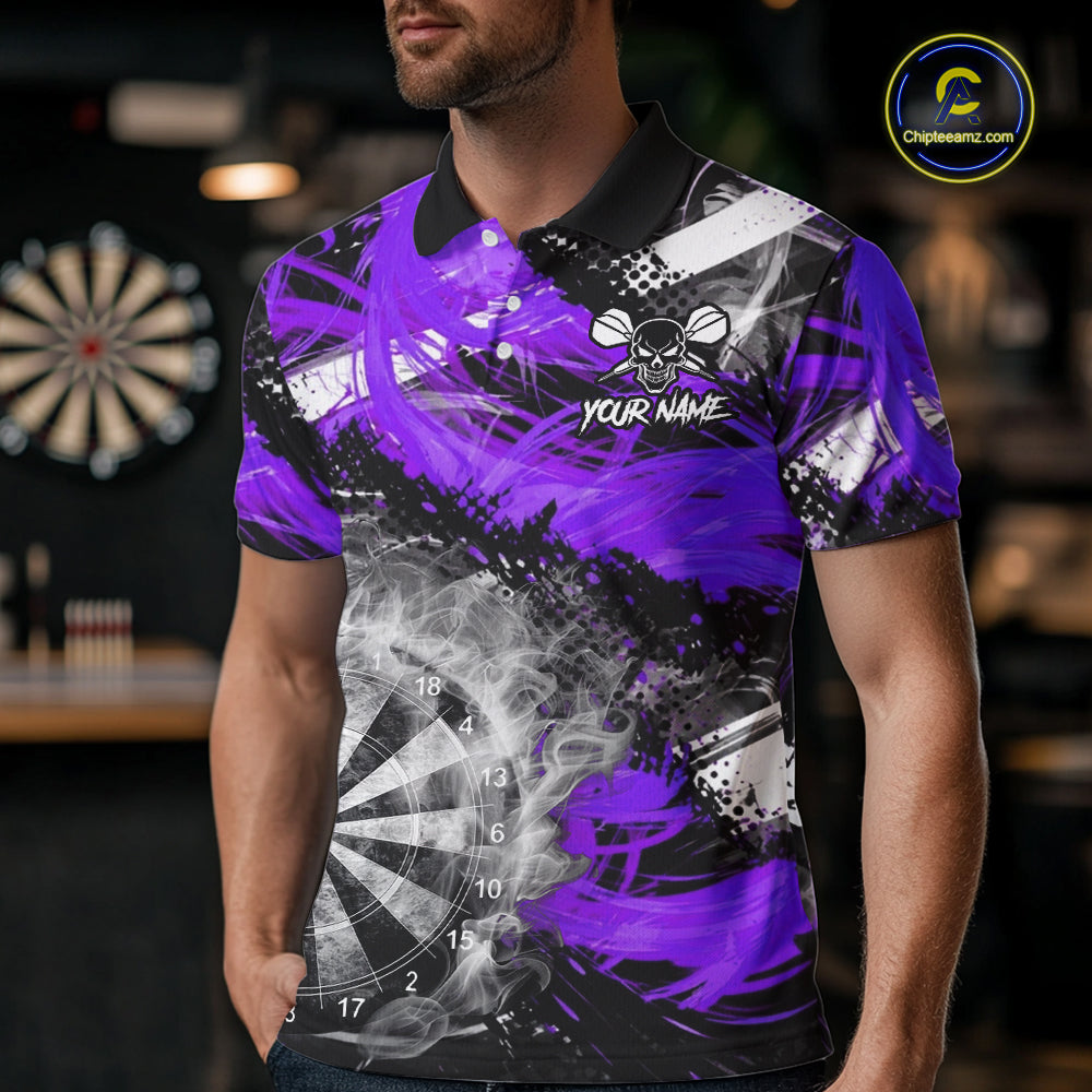 Purple & Grey Smokes Dartboard Custom Men Darts Polo Shirts Grunge Dart League Jerseys NYN2278