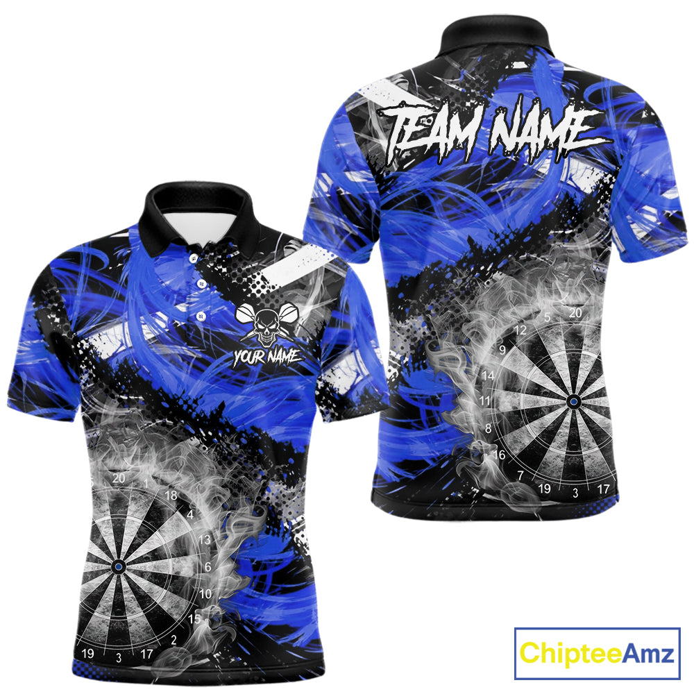 Blue & Grey Smokes Dartboard Custom Men Darts Polo Shirts Grunge Dart League Jerseys NYN2280