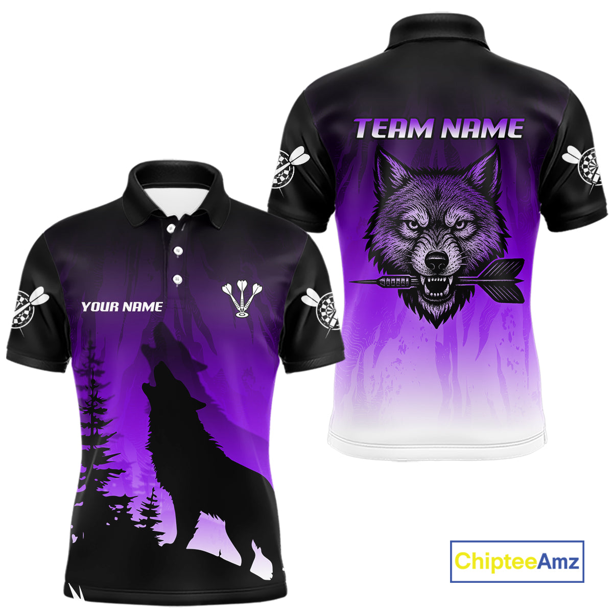 Personalized Wolf-Head Dart Arrows Purple Dart Polo Shirt For Men Dart Team Jerseys NYN2283