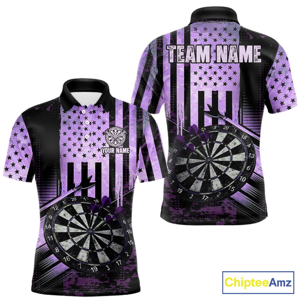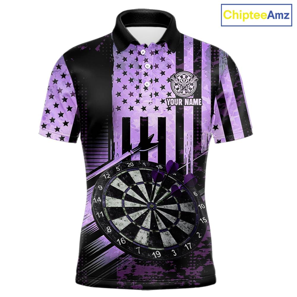 Purple US Flag Grunge Dartboard & Arrow Men Darts Polo Shirts Custom Dart Team Jerseys NYN2444