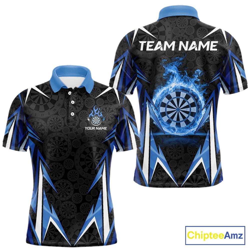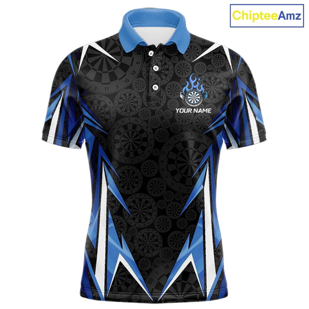 Black And Blue Flames Dartboard Men Darts Polo Shirts Custom Fire Flame Dart Team Jerseys NYN2445