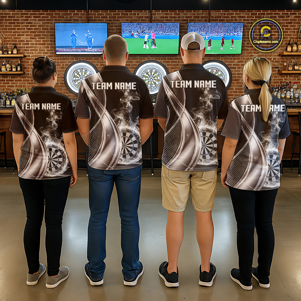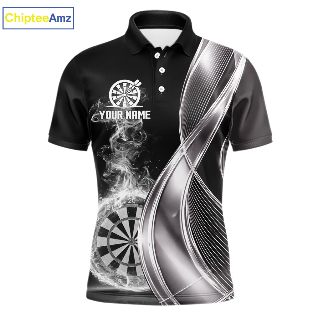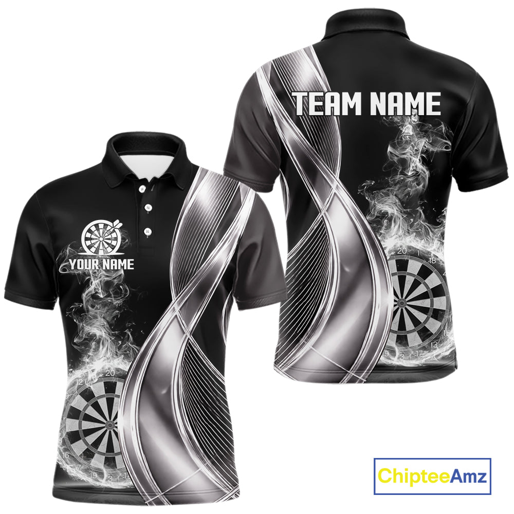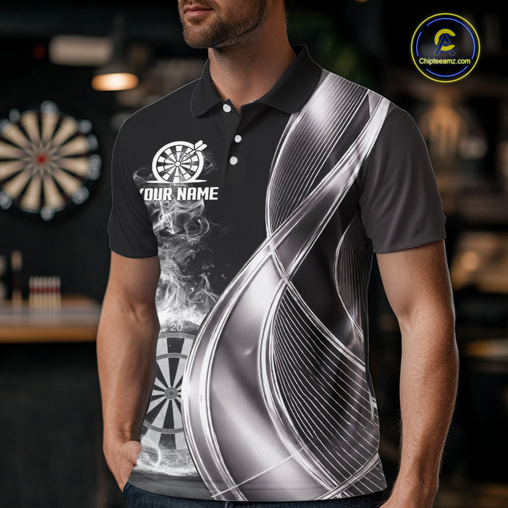 Black And Silver Darts Polo Shirts For Men Custom White Smoke Dartboard Dart Team Jerseys NYN2446
