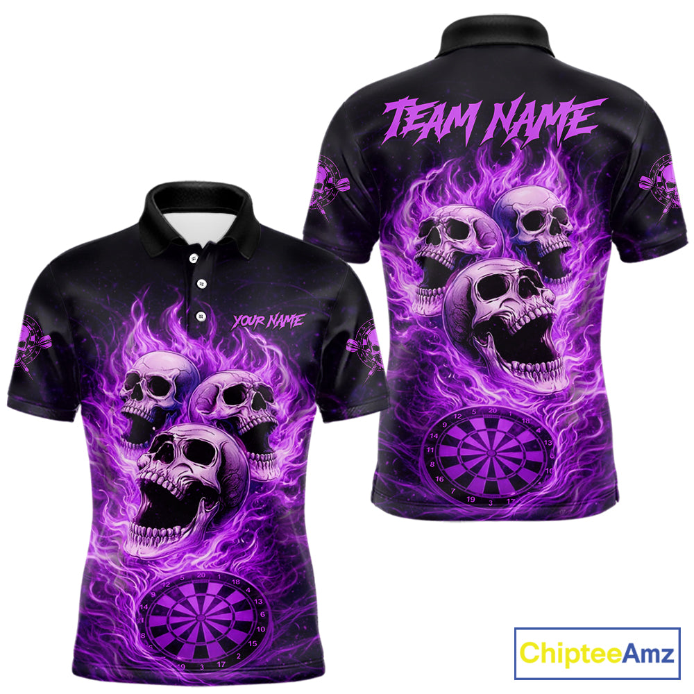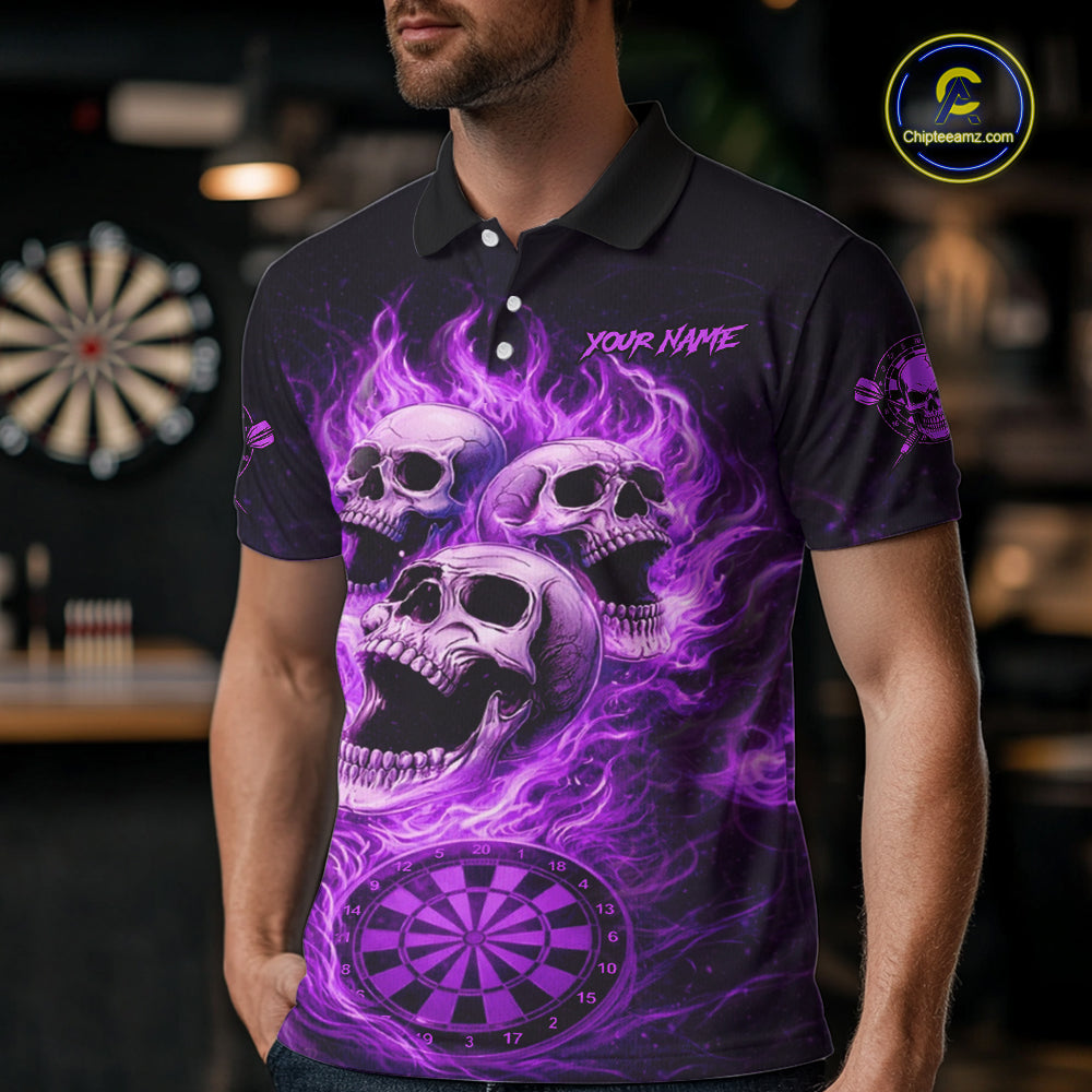 Purple Skulls Fire Flame Dartboard Darts Polo Shirt For Men Personalized Dart Team Jerseys NYN2517