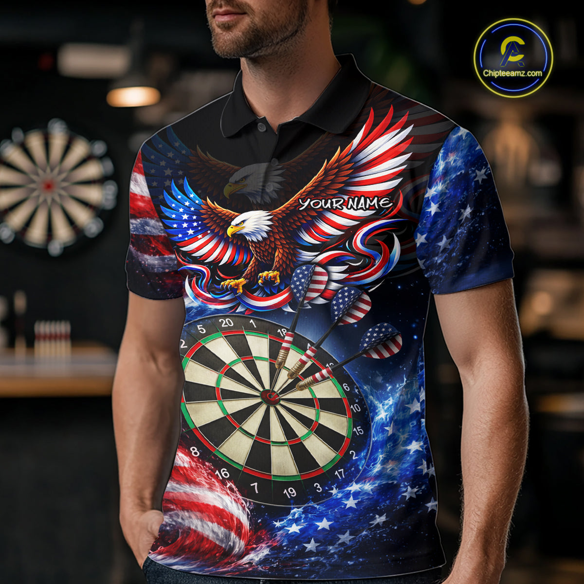 Eagle Dartboard US Flag Freedom Darts Polo Shirt Personalized Patriotic Men Dart Jerseys NYN2527