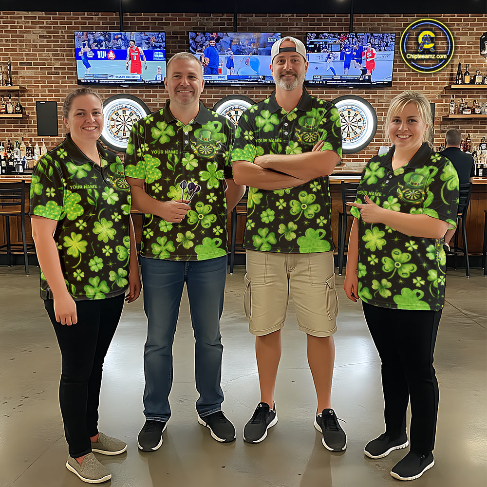 Funny Eagle Dartboard Shamrock Men Darts Polo Shirt Custom St Patrick's Day Darts Team Jersey NYN2531
