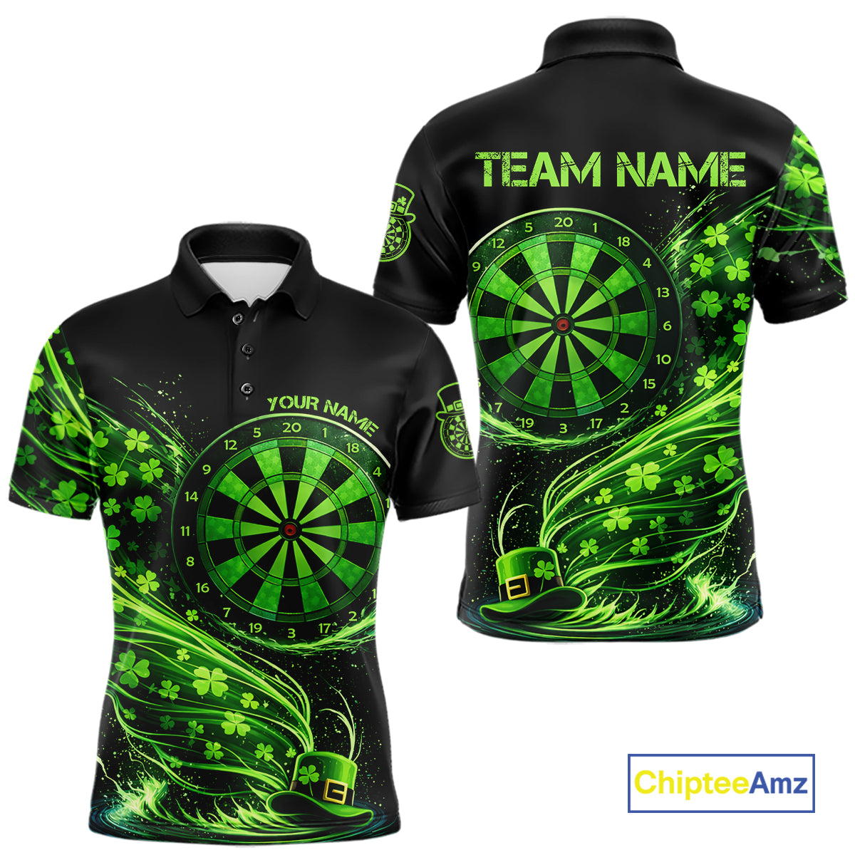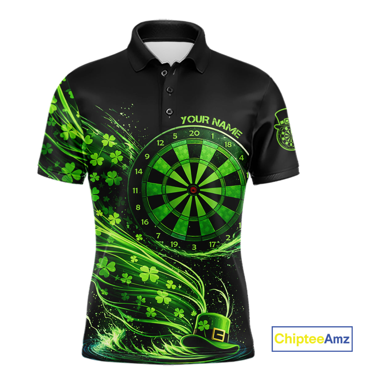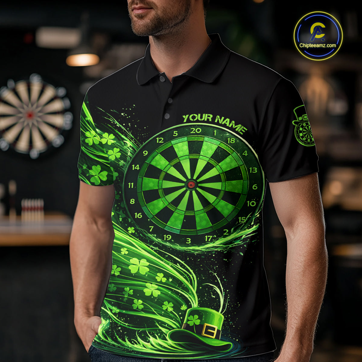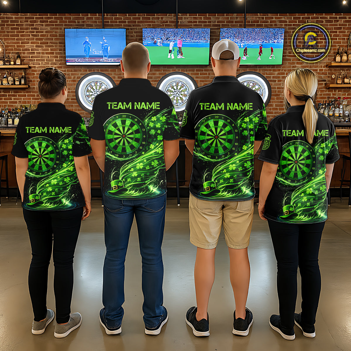 Funny Shamrock Tornado Dartboard Men Darts Polo Shirt Custom St Patrick's Day Darts Team Jersey NYN2532