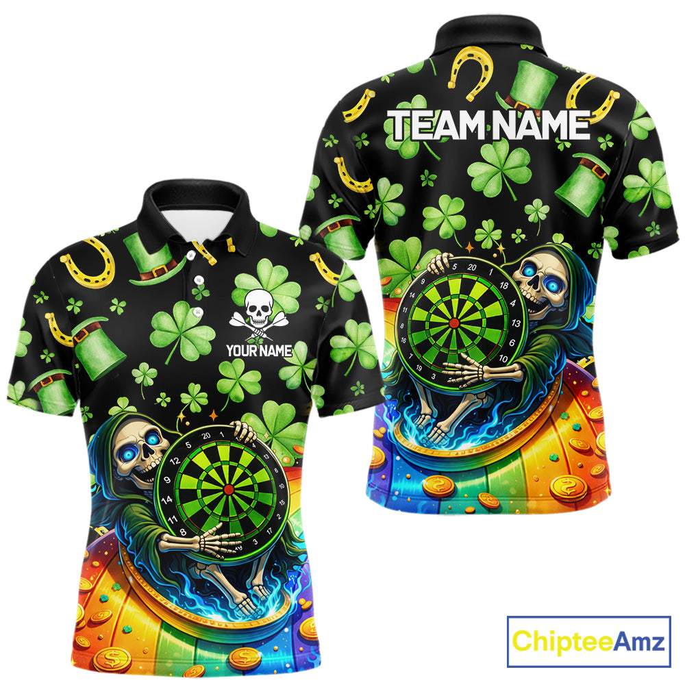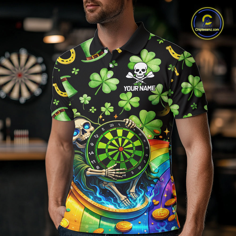 Rainbow Funny Skeleton Green Dartboard Men Darts Polo Shirt Custom St Patrick's Day Darts Jersey NYN2533