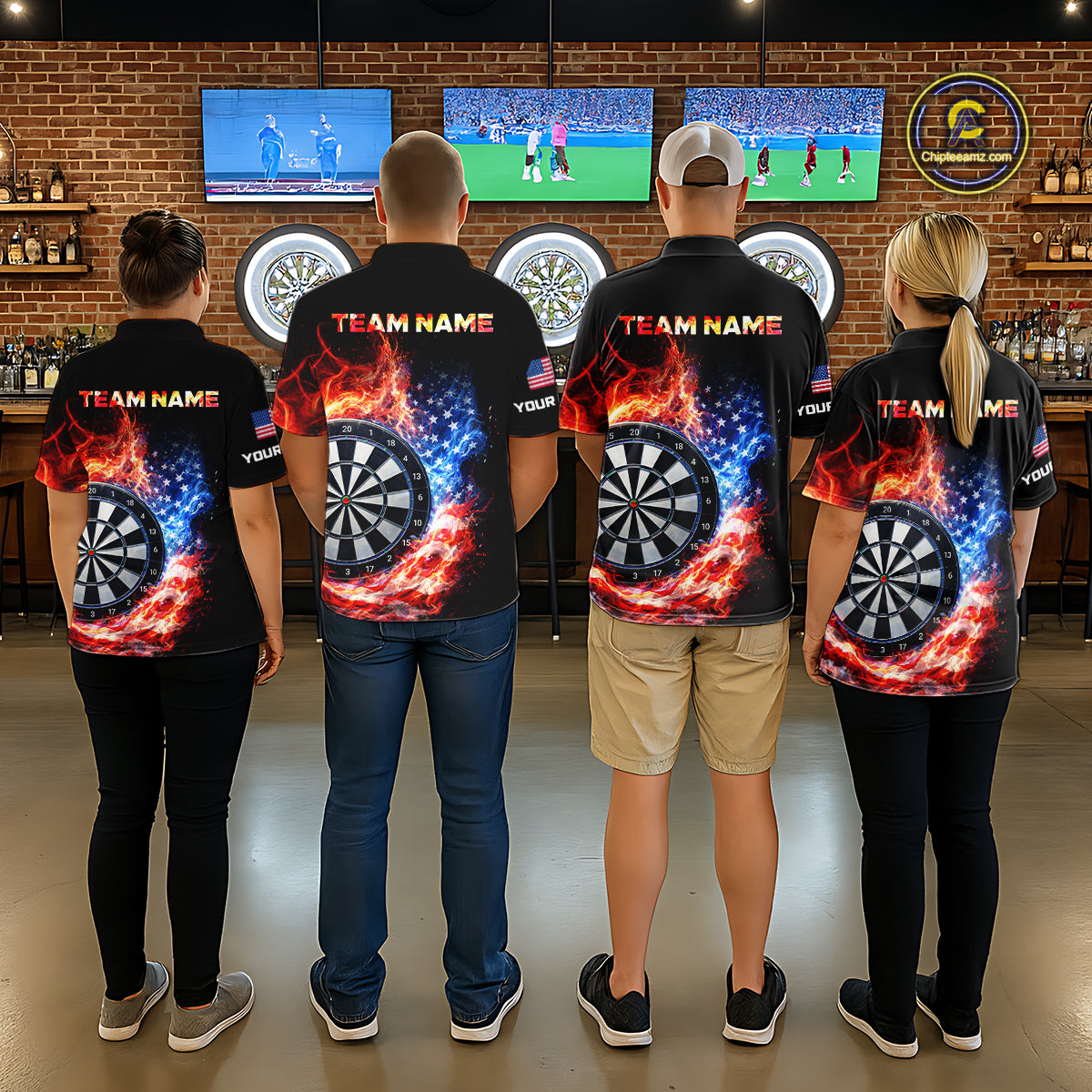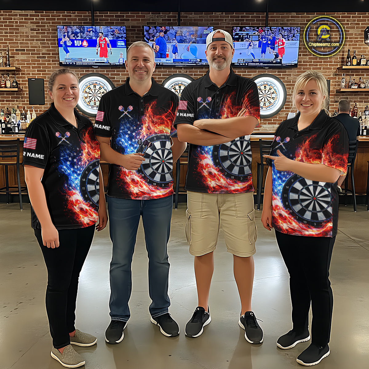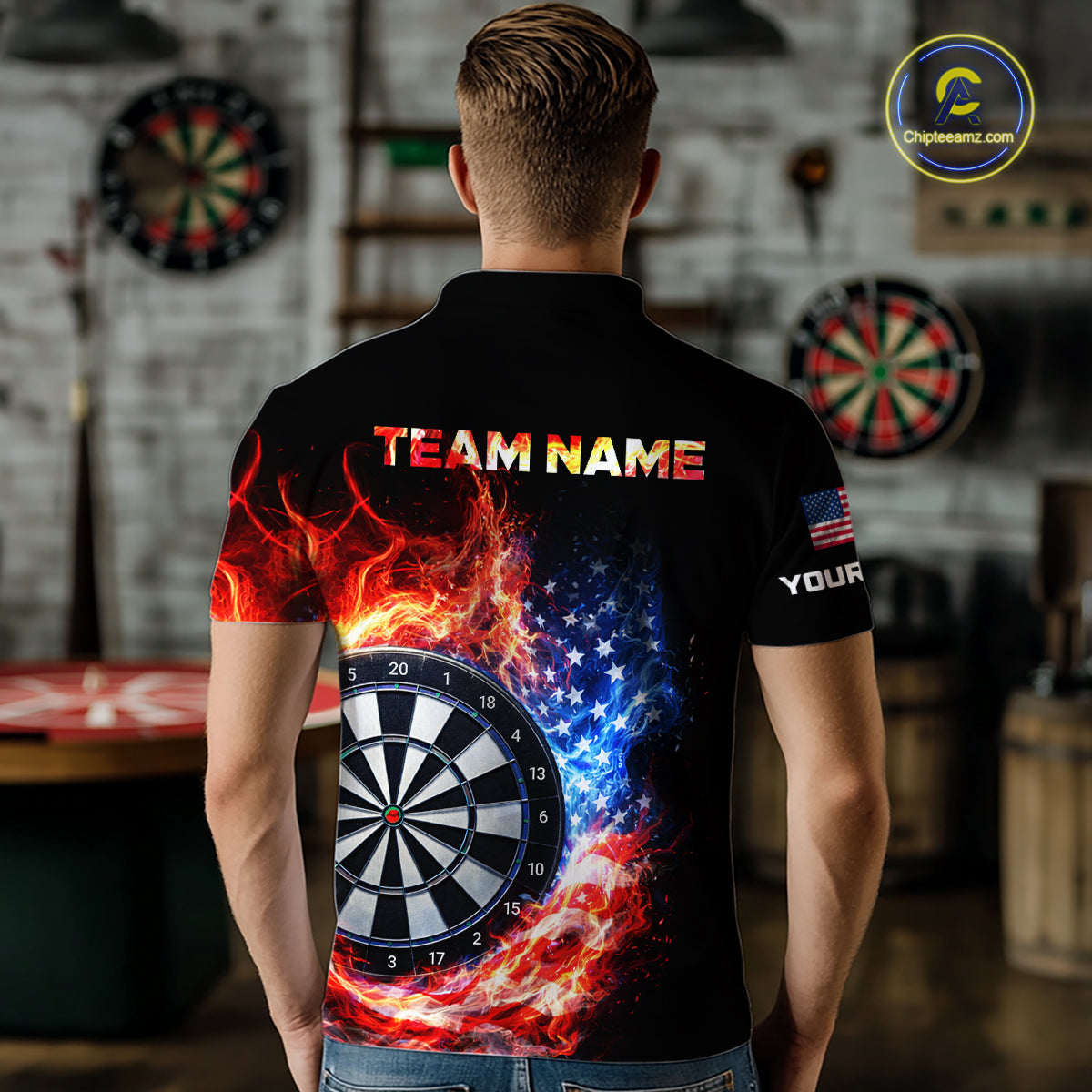 American Flag Fire Flame Smoke Dartboard Men Darts Polo Shirt Custom Dart Team Jersey Gifts NYN2537