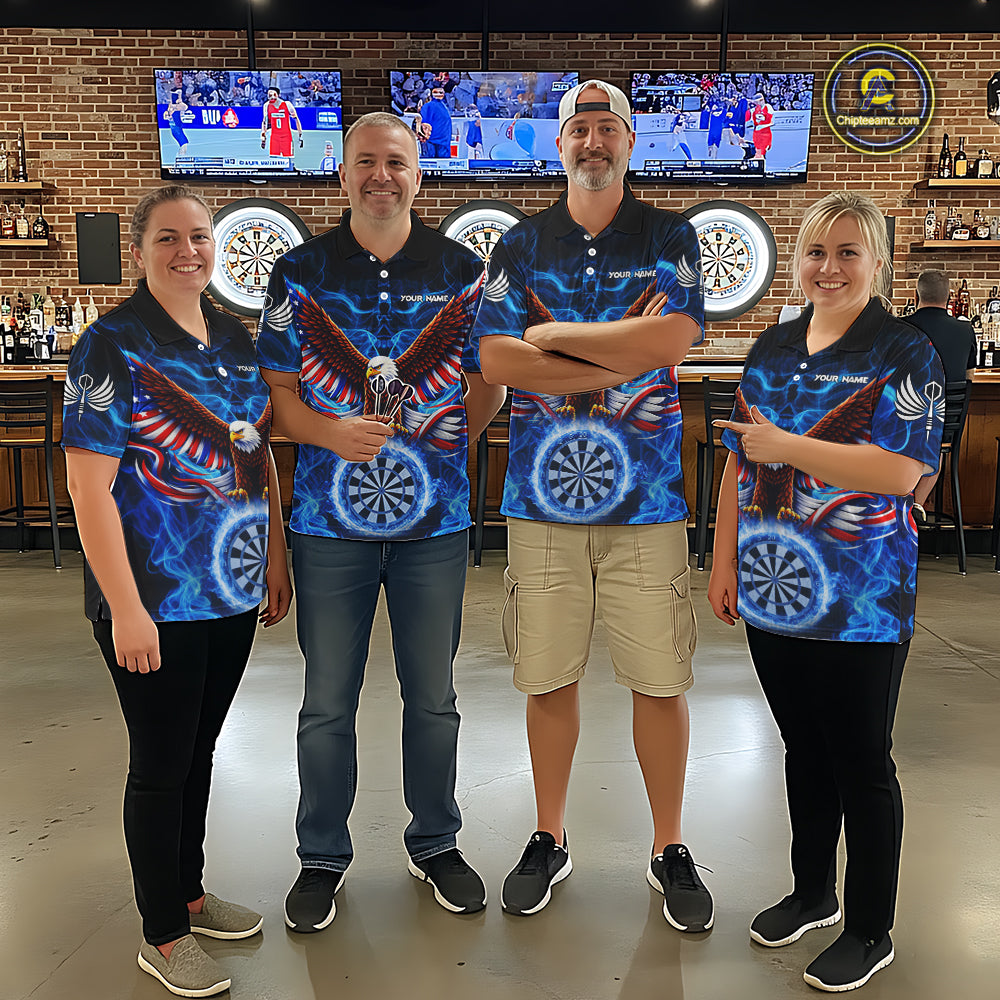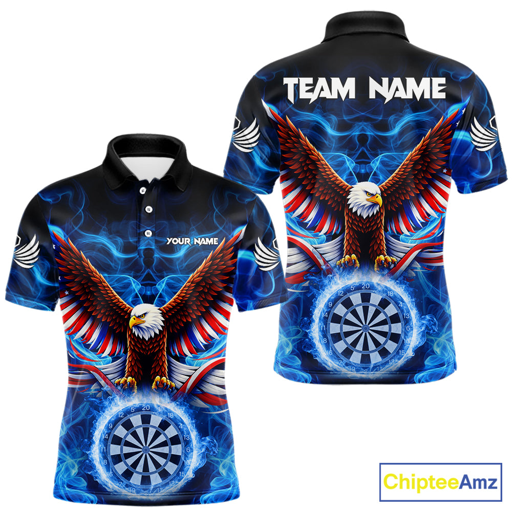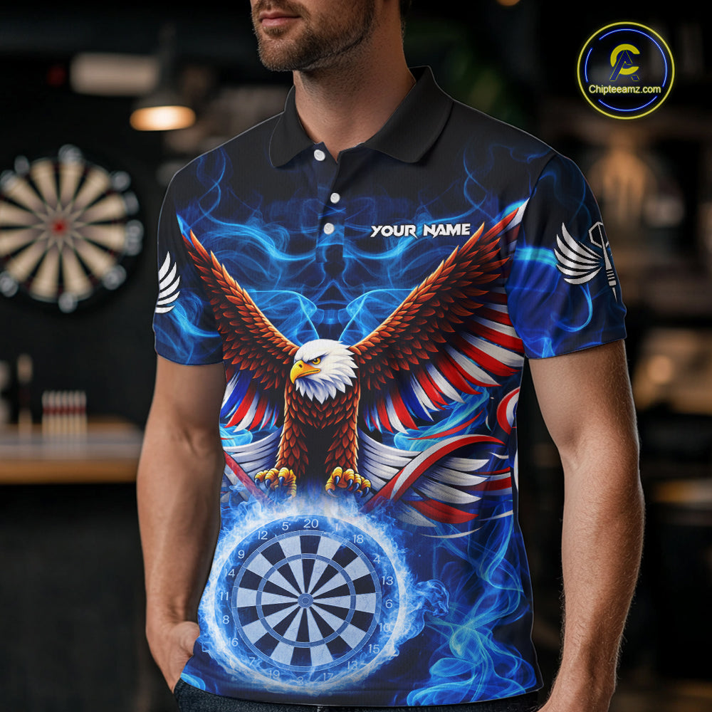 Blue Flames US Flag Eagle Freedom Darts Polo Shirt Personalized Patriotic Men Dart Team Jerseys NYN2538