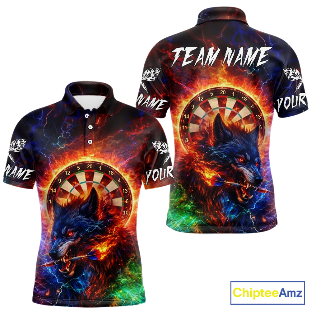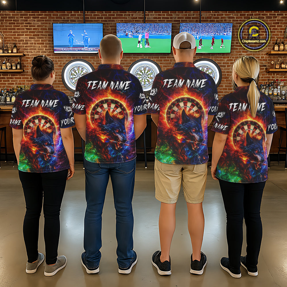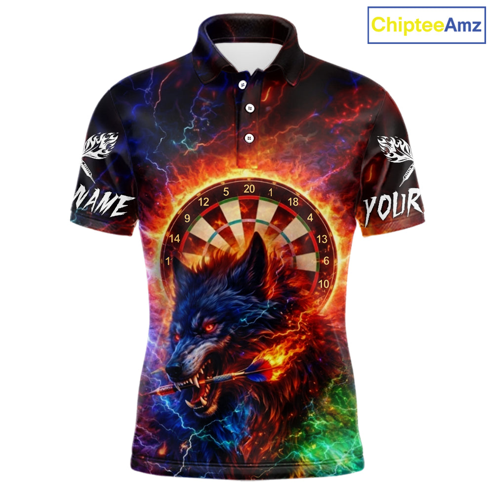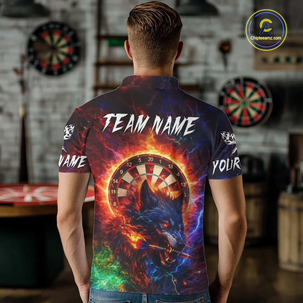 Colorful Lightning Funny Wolf Flame Dartboard Men Darts Polo Shirt Custom Outfits Dart Jerseys NYN2540