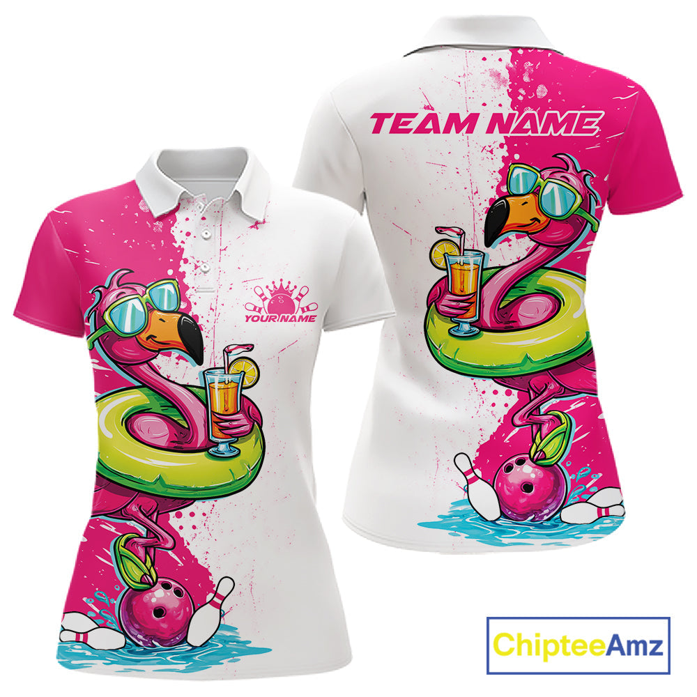 Custom Funny Flamingo Bowling Women Polo Shirt, Flamingo Bowling Tourmanent Shirt IPHW10266