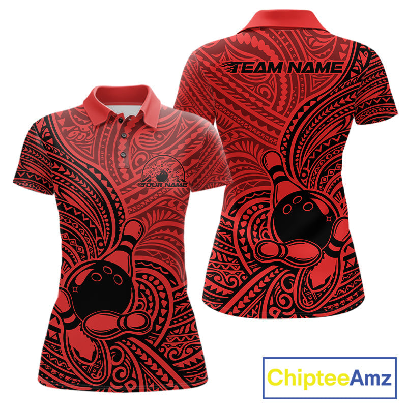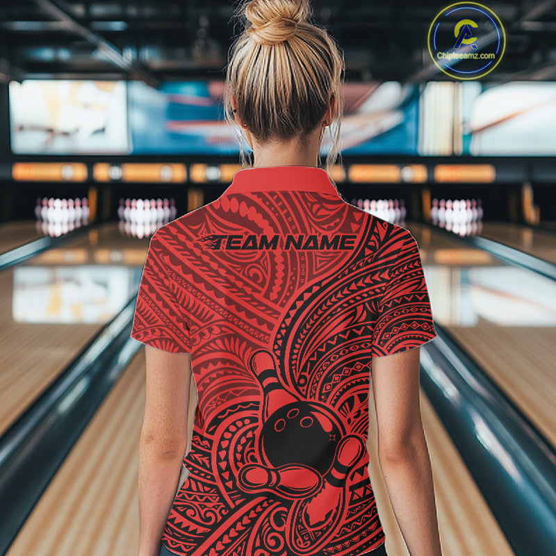 Custom Black And Red Traditional Samoan Tribal Polynesian Pattern Bowling Women Shirt IPHW10325