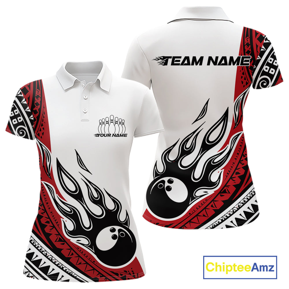 Custom Red Tribal Polynesian Pattern Women Bowling Team Shirt, Maori Style Bowling Outfit IPHW10326
