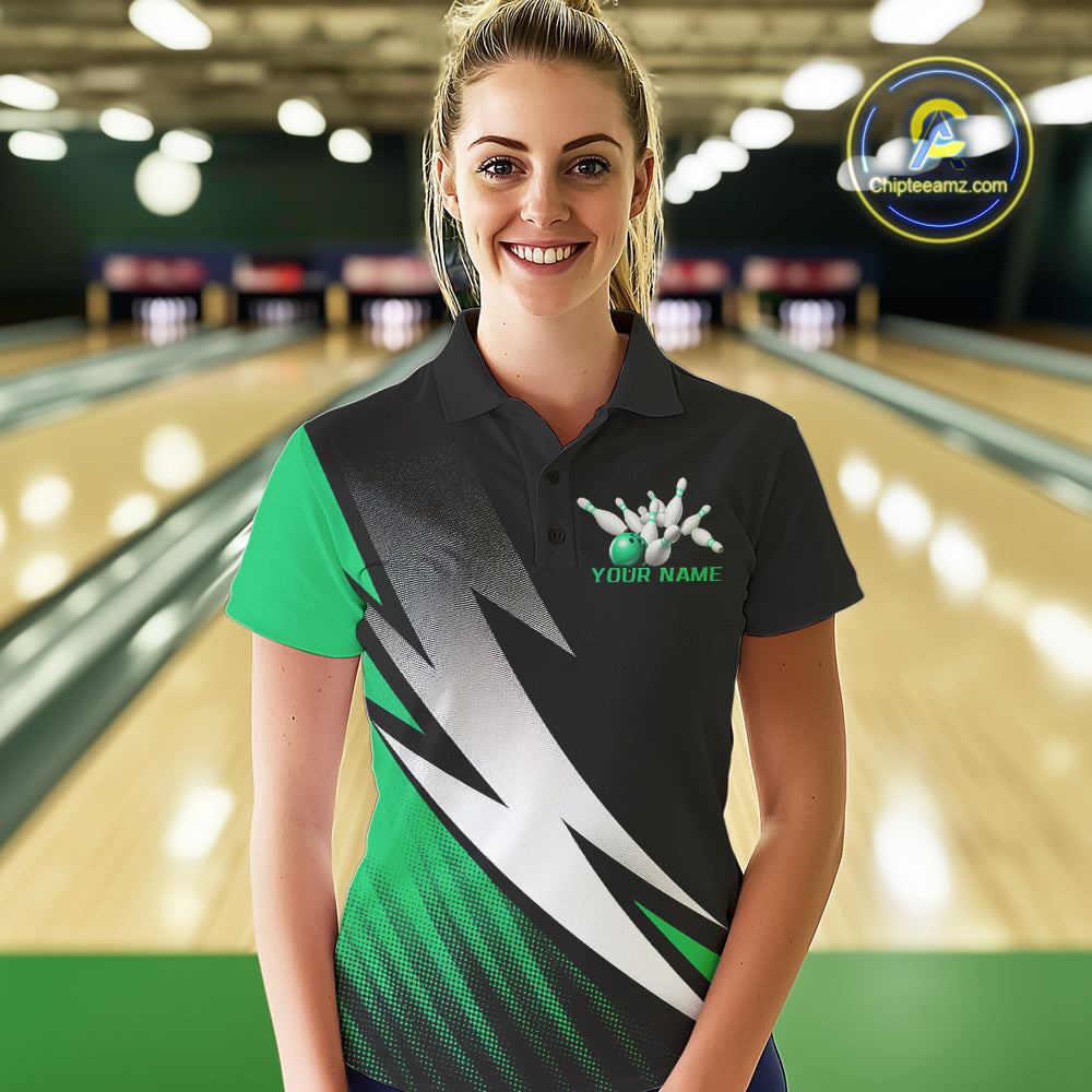 Black And Green Custom Bowling Jerseys, Women Polo Shirt Bowling Tournament Outfits IPHW9079