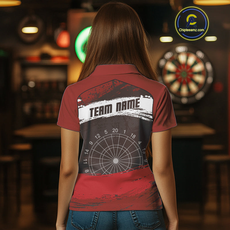 Custom Grunge Black And Red Dripping Dartboard Dart Team Women Polo Shirt NYN1547