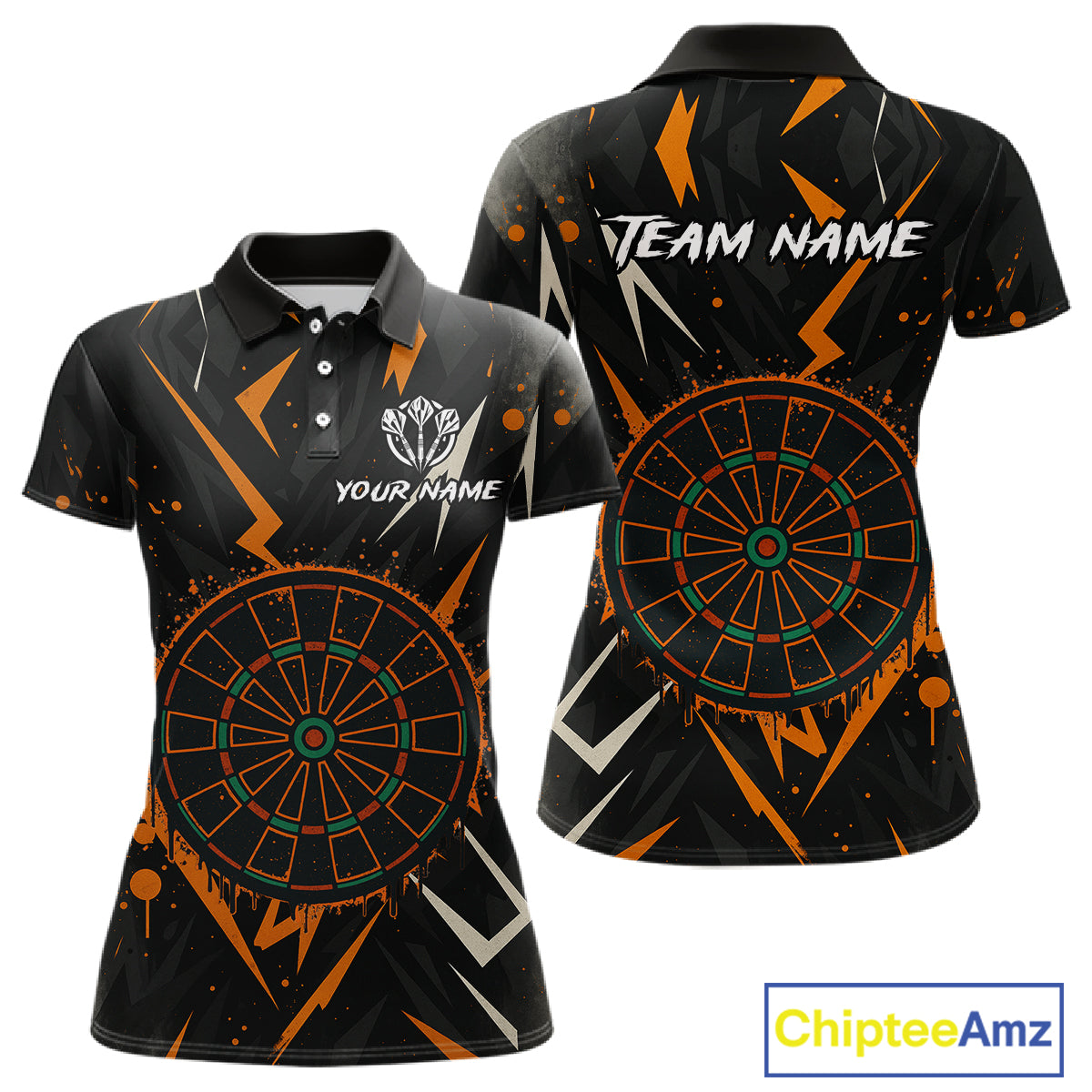Custom Black Orange Dartboard Grunge Dart Women Polo Shirt Dart Tournament Jerseys NYN1567