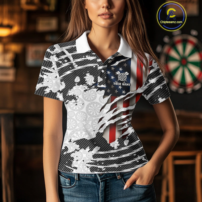 Custom Black White USA Flag Dartboard Dart Women Polo Shirt Patriotic Dart Jerseys NYN1612