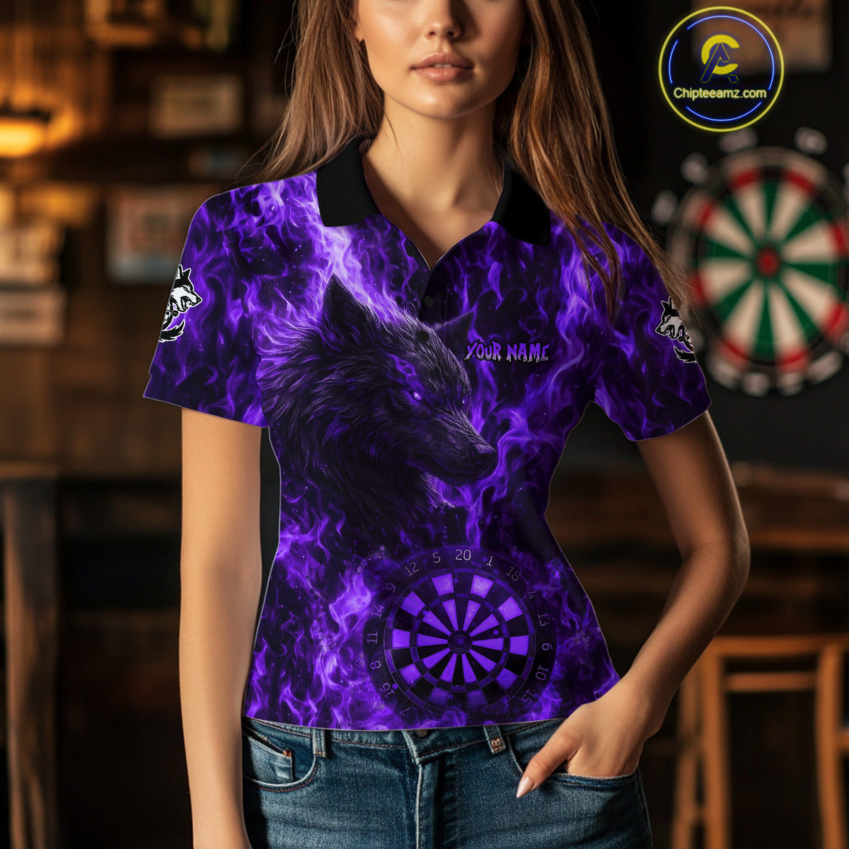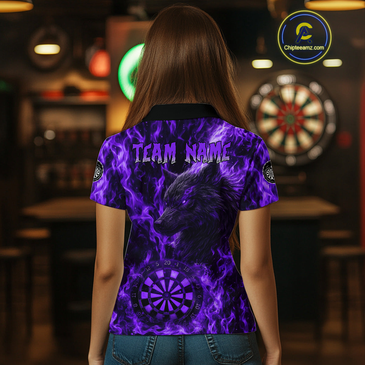 Custom Black Red Flames Wolf Dartboard Dart Women Polo Shirt Outfits Dart Jerseys NYN1619