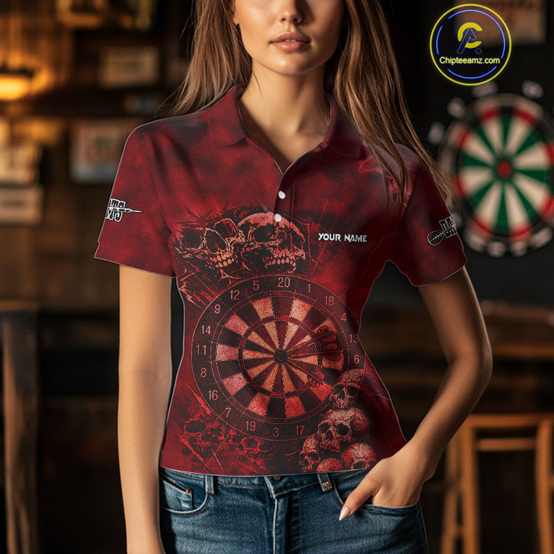 Custom Grunge Red Dartboard Multi-Skull Dart Women Polo Shirt Dart Team Jerseys NYN1622