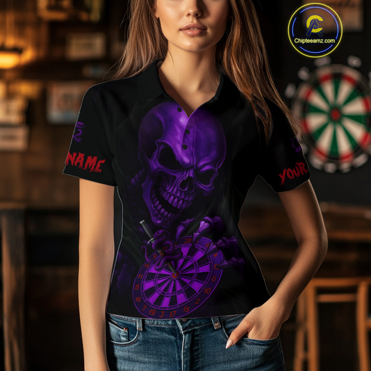 Custom Blood Cobra Purple Dartboard Skeleton Dart Women Polo Jerseys Dart Team Shirt NYN1654