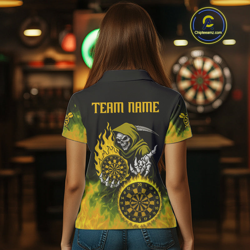 Custom Yellow Flames Dartboard Horror Grim Reaper Dart Women Polo Jerseys Outfits Dart Shirt NYN1660