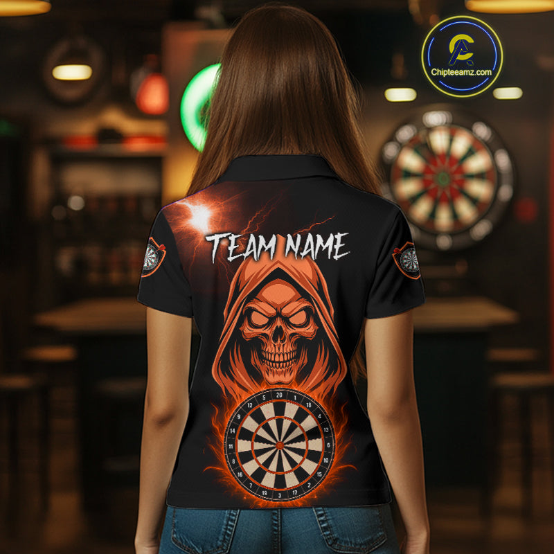 Custom Skeleton Orange Flames Dartboard Dart Women Polo Jerseys Outfits Dart Team Shirt NYN1666